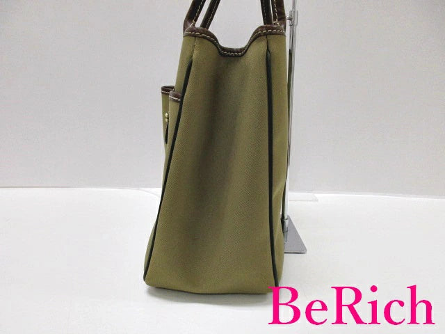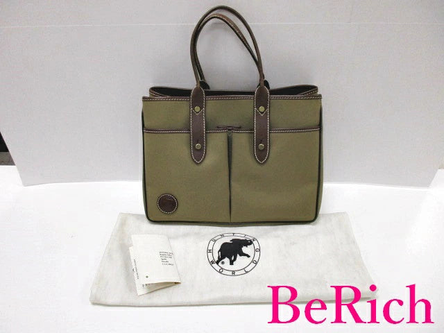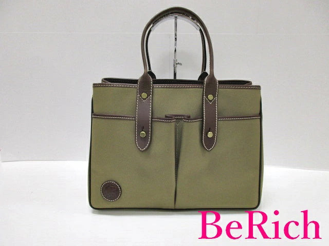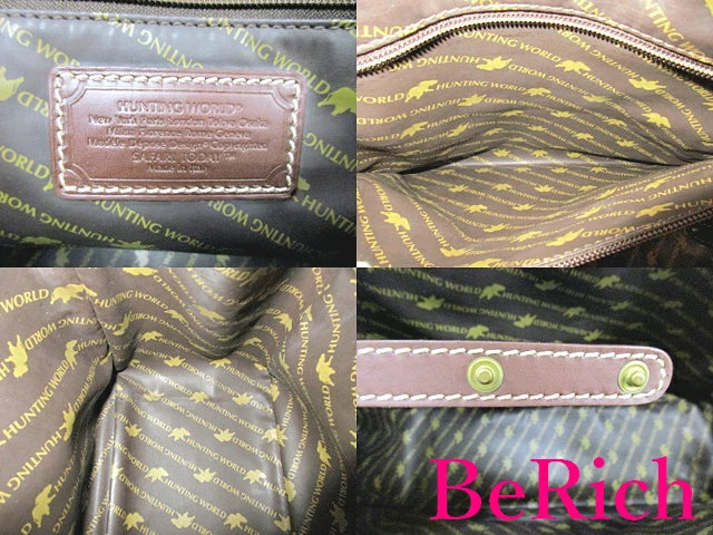 ハンティングワールド HUNTING WORLD サファリ トゥディ トートバッグ ハンドバッグ 茶 ブラウン カーキ ロゴ キャンバス レザー ショルダーバッグ 鞄 【中古】【送料無料】 bk7020