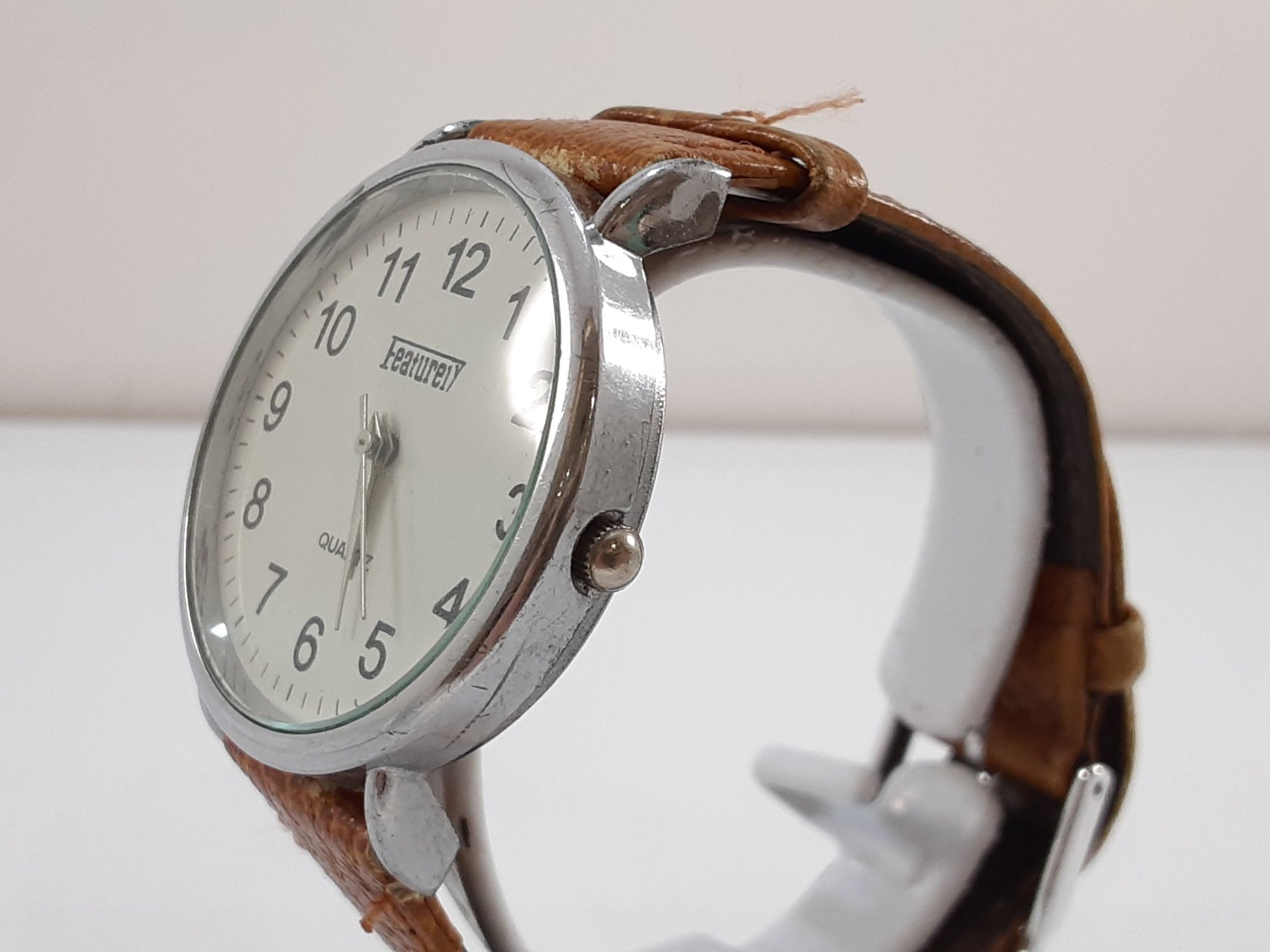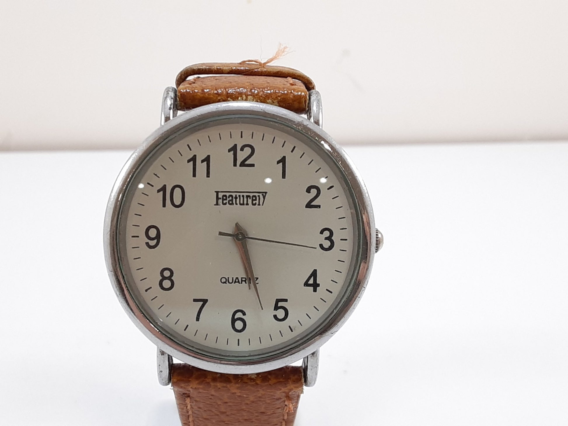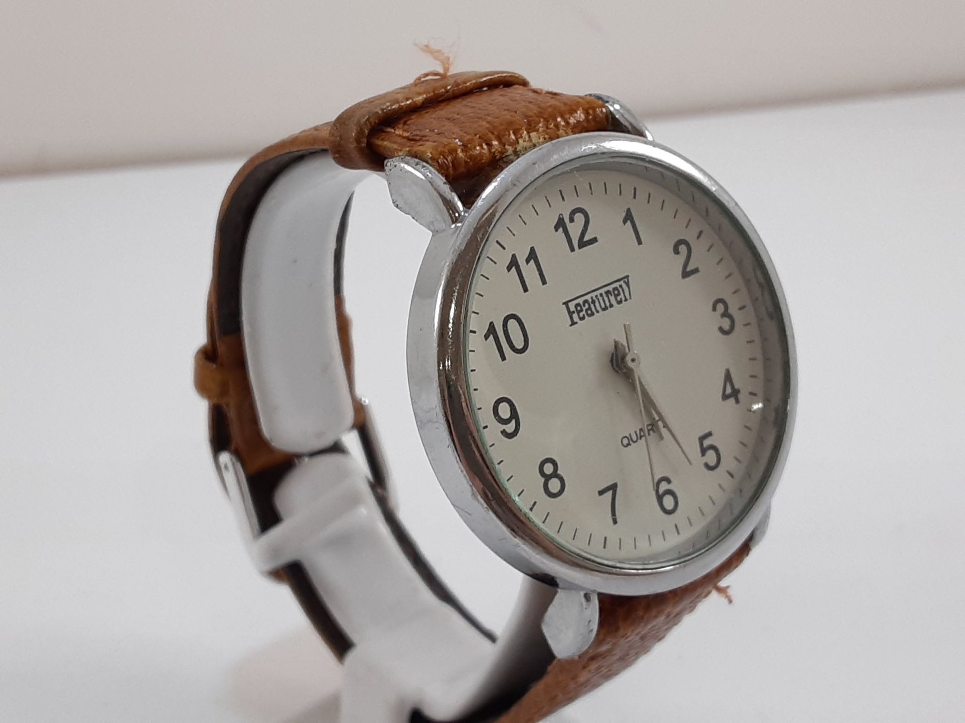 フィーチャリー Featurely メンズ 腕時計 白 茶 ホワイト ブラウン SS レザー ブレス アナログ クォーツ QZ ウォッチ 【中古】【送料無料】 ht5524