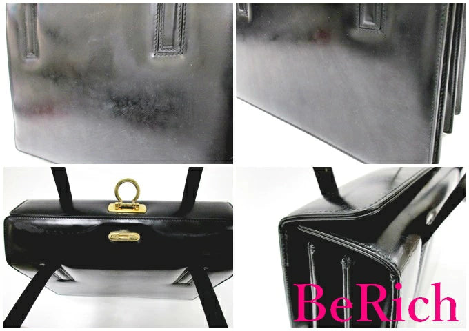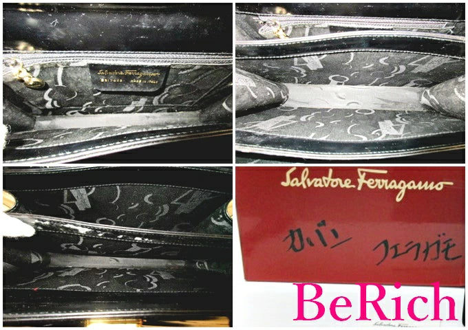 フェラガモ Salvatore Ferragamo ガンチーニ ショルダーバッグ 黒 ブラック レザー ロゴ ハンドバッグ 鞄 【中古】【送料無料】 bk6971