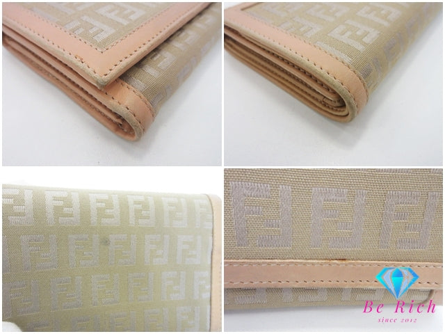 フェンディ FENDI 二つ折り財布 中財布 8M0029 ズッキーノ カーキ ベージュ キャンバス レザー ズッカ ロゴ ミディアム コンパクト ウォレット 【中古】【送料無料】 bs4241