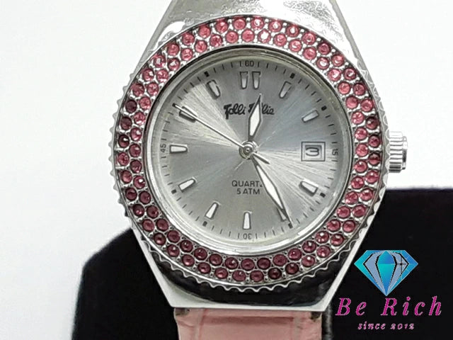 フォリフォリ Folli Follie レディース 腕時計 デイト F212/LS チェンジ ベゼル ベルト ラインストーン シルバー SS レザー ブレス アナログ クォーツ QZ ウォッチ 【中古】【送料無料】 ht4389