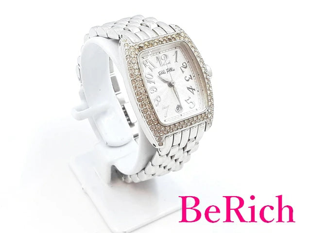 フォリフォリ FOLLI FOLLIE レディース 腕時計 デイト WF5T081BDS 白 ホワイト 文字盤 SS レザー ラインストーン アナログ クォーツ QZ ウォッチ 【中古】【送料無料】 ht4670