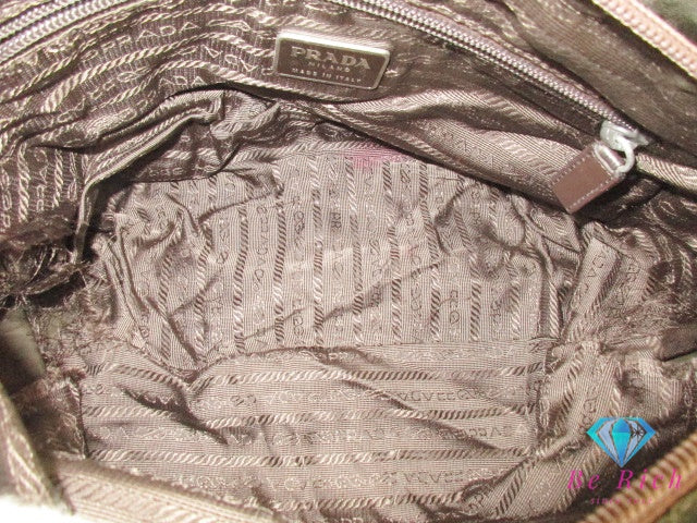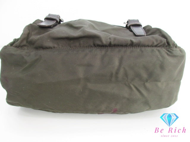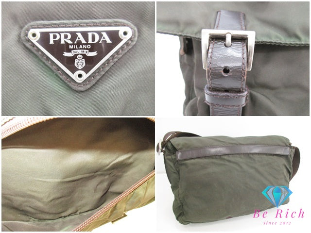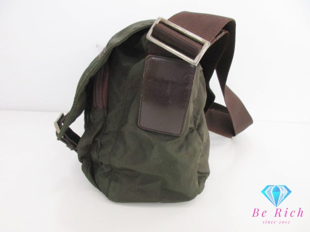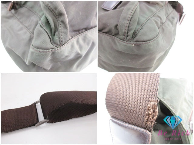 プラダ PRADA ショルダーバッグ カーキ グリーン 緑 ナイロン レザー 三角 プレート ロゴ クロスボディ 斜め掛け 鞄 【中古】【送料無料】 bk9565