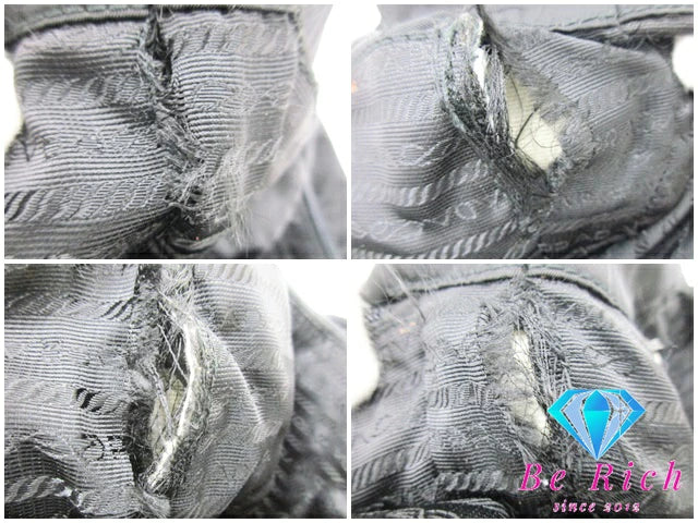 持ち手の付け根のひとつに縫製の修理跡があります 内側両サイドに破れ箇所が四か所あります |