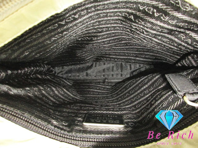 プラダ PRADA ハンドバック ポコノ ベージュ ナイロン レザー プレート ロゴ レディース 手提げ【中古】【送料無料】bk8565
