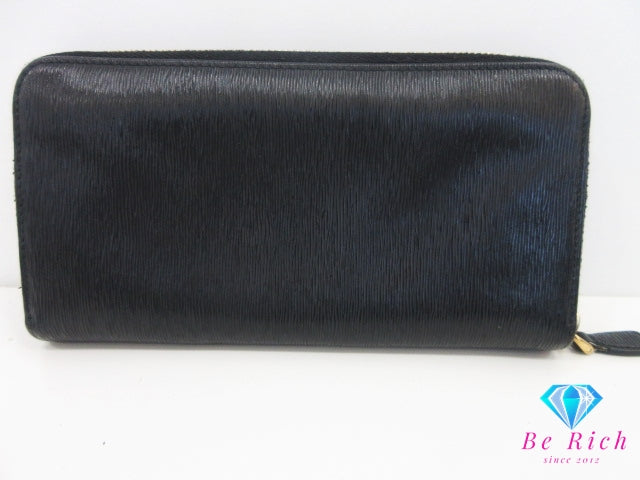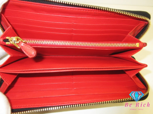 プラダ PRADA ラウンド ファスナー 長財布 1ML506 サフィアーノ レザー 黒 ブラック 赤 レッド バイカラー ロゴ 二つ折り財布 ロング ウォレット 【中古】【送料無料】bs3863