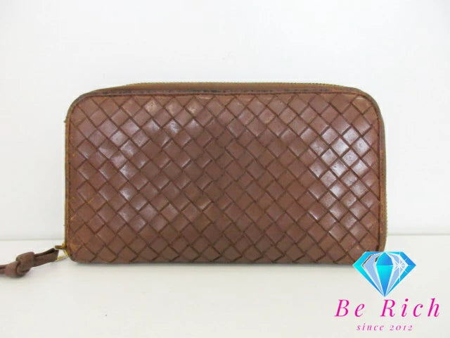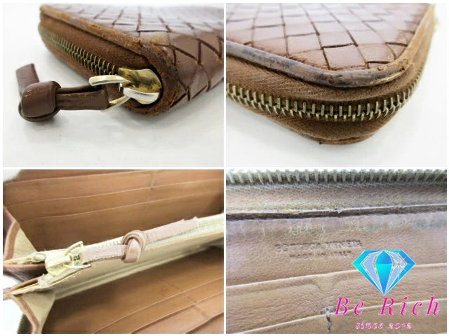 ボッテガ ヴェネタ BOTTEGA VENETA ラウンド ファスナー 長財布 イントレチャート レザー ゴールド ロゴ 二つ折り財布 ロング ウォレット 【中古】【送料無料】bs3759