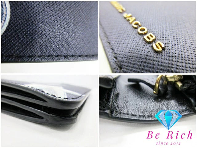 マークジェイコブス MARC JACOBS 二つ折り財布 長財布 ポップアート プリント 黒 ブラック サフィアーノ レザー ロング ウォレット 【中古】【送料無料】 bs3679