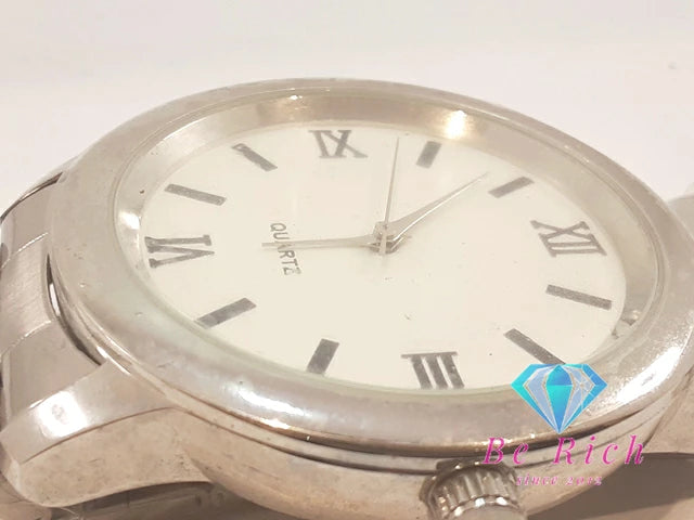 メンズ 腕時計 白 ホワイト シルバー SS ブレス アナログ クォーツ QZ ウォッチ メーカー 記載なし 【中古】【送料無料】 ht6236