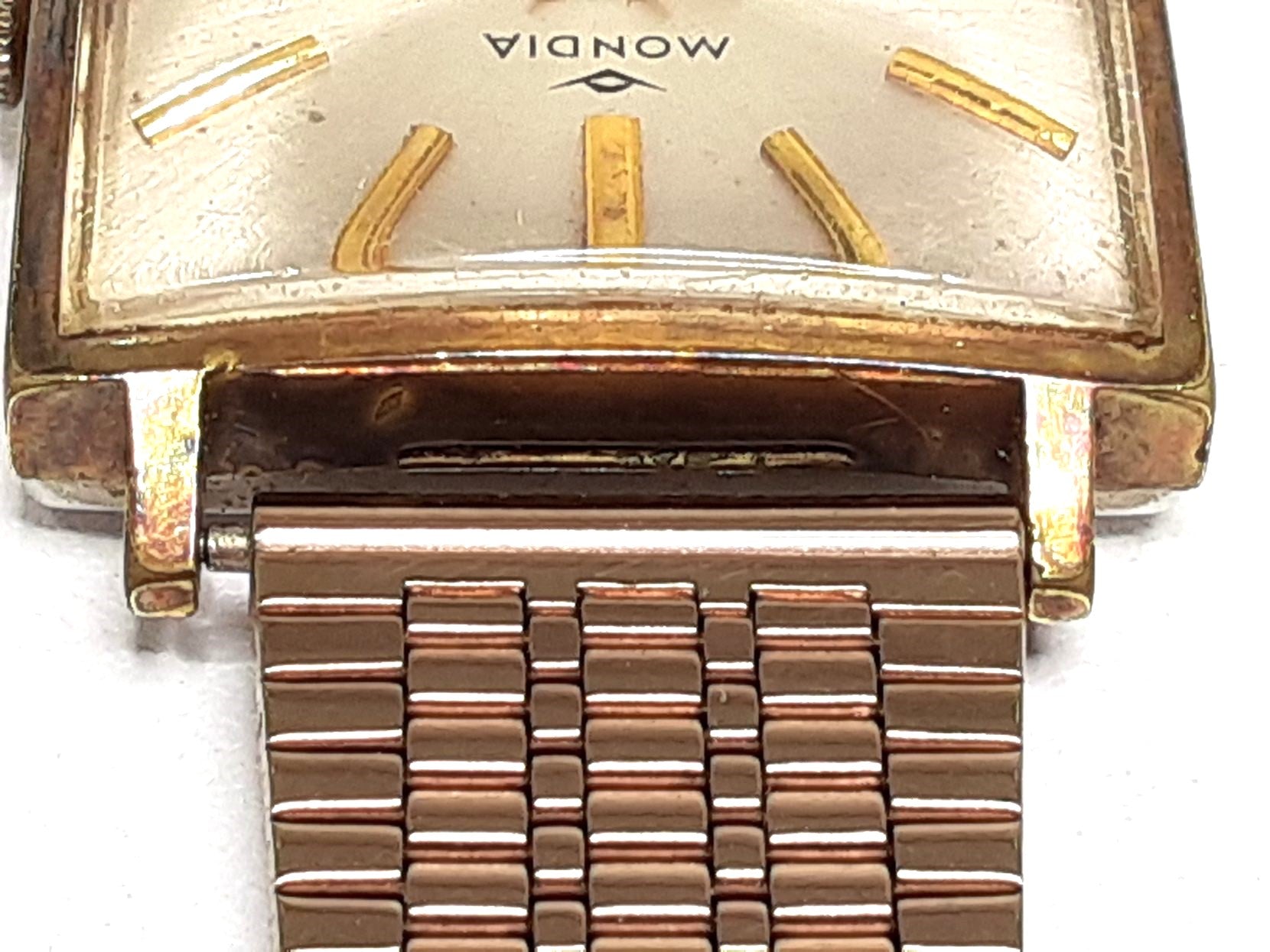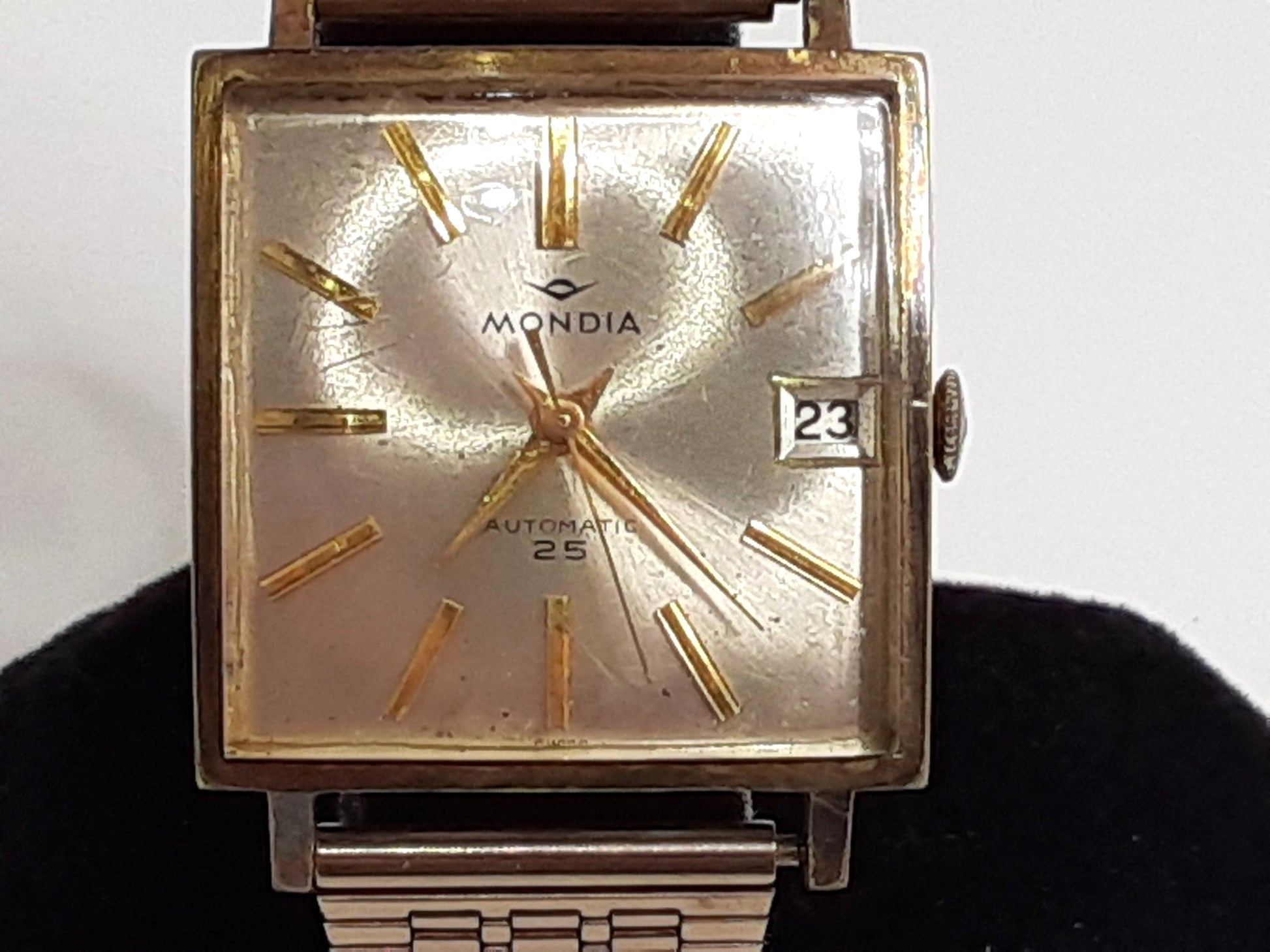 モンディア MONDIA 21石 自動巻き メンズ 腕時計 デイト 22286 スクエア シルバー SS GP ブレス アナログ オートマ AT アンティーク ヴィンテージ ウォッチ 【中古】【送料無料】 ht5505