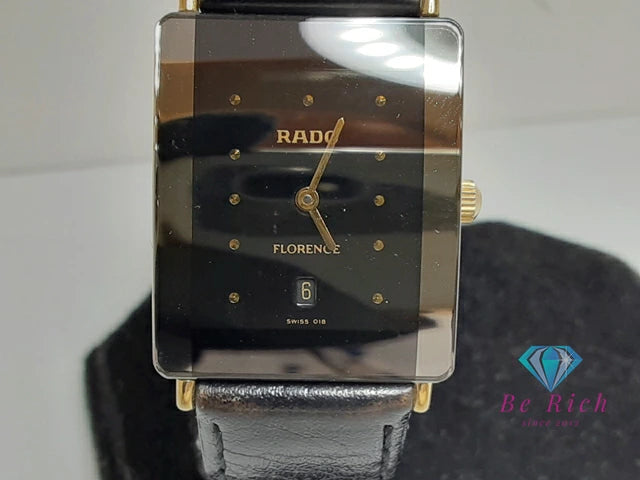 ラドー RADO フローレンス デイト 腕時計 160.3605.2N スクエア 黒 ブラック SS GP レザー ブレス アナログ クォーツ ウォッチ ボーイズ ユニセックス メンズ レディース FLORENCE 【中古】【送料無料】 bt3429