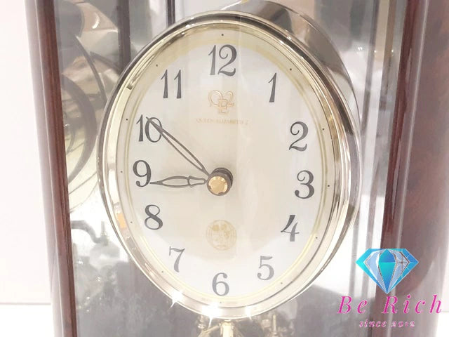 リズム時計工業 クイーンエリザベス 2 置時計 QE2-R36 アナログ クォーツ QZ アンティーク レトロ インテリア 小物 クロック ウォッチ queen elizabeth 【中古】【送料無料】ht4370