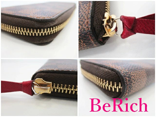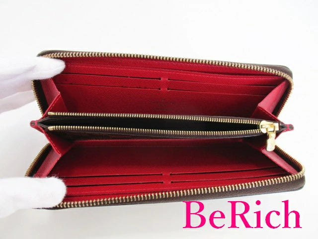ルイ ヴィトン LOUIS VUITTON ラウンドファスナー 長財布 ダミエ ポルト フォイユ クレマンス N60534 エベヌ スリーズ レッド ロゴ 二つ折り財布 ロング ウォレット 【中古】【送料無料】 bs3400