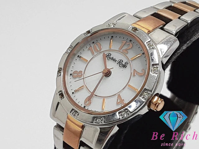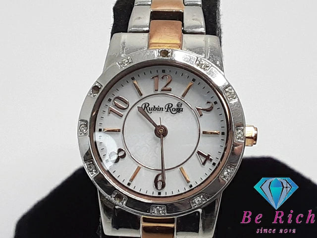 ルビンローザ Rubin Rosa ソーラー レディース 腕時計 R009-SOLTWH 白 ホワイト コンビ SS ロゴ アナログ クォーツ QZ ウォッチ 【中古】【送料無料】 ht5084
