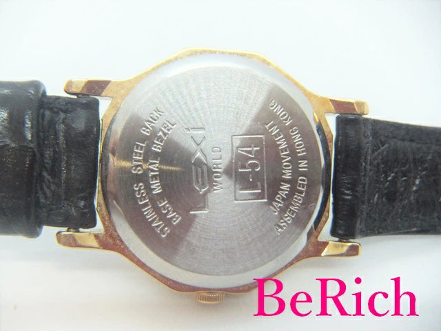 レキシー LEXI レディース 腕時計 L-54 ゴールド 文字盤 SS レザー 黒 ブラック アナログ クォーツ QZ ウォッチ 【中古】【送料無料】 ht3839