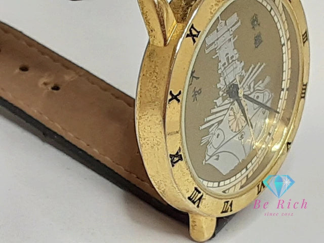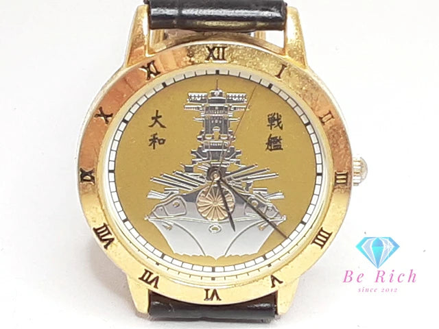 戦艦 大和 メンズ 腕時計 ゴールド シルバー SS GP レザー ブレス アナログ クォーツ QZ ウォッチ メーカー 記載なし ノー ブランド ヤマト 【中古】【送料無料】 ht5728