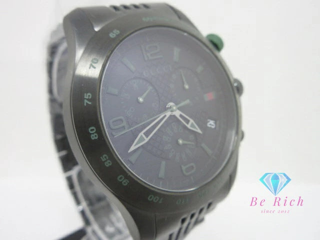 美品 グッチ GUCCI G タイムレス クロノグラフ メンズ 腕時計 デイト YA126225A シェリー ディアマンテ 黒 ブラック SS ブレス アナログ クォーツ QZ ウォッチ G-TIMELESS 【中古】【送料無料】 bt3497