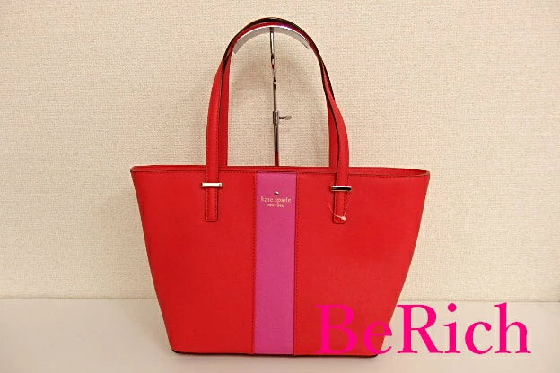 美品 ケイト スペード kate spade トートバッグ シダー ストリート レッド 赤 ピンク ストライプ レザー ショルダーバッグ ロゴ 肩掛け 鞄 【中古】【送料無料】 bk6217