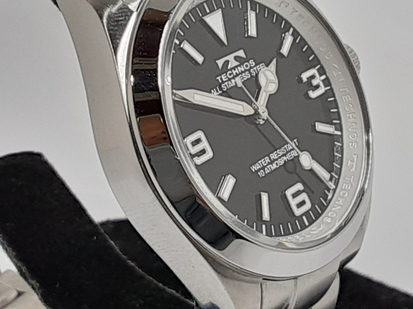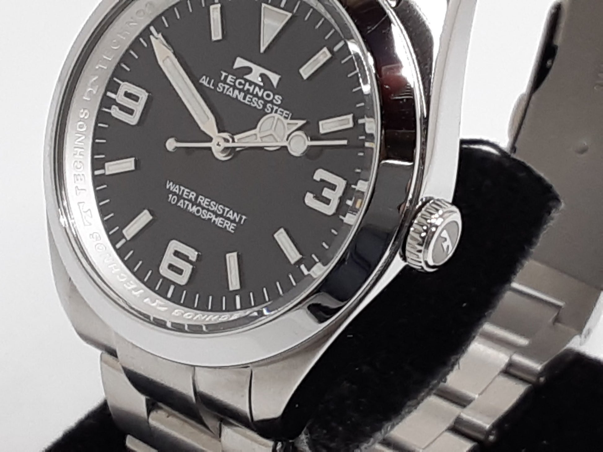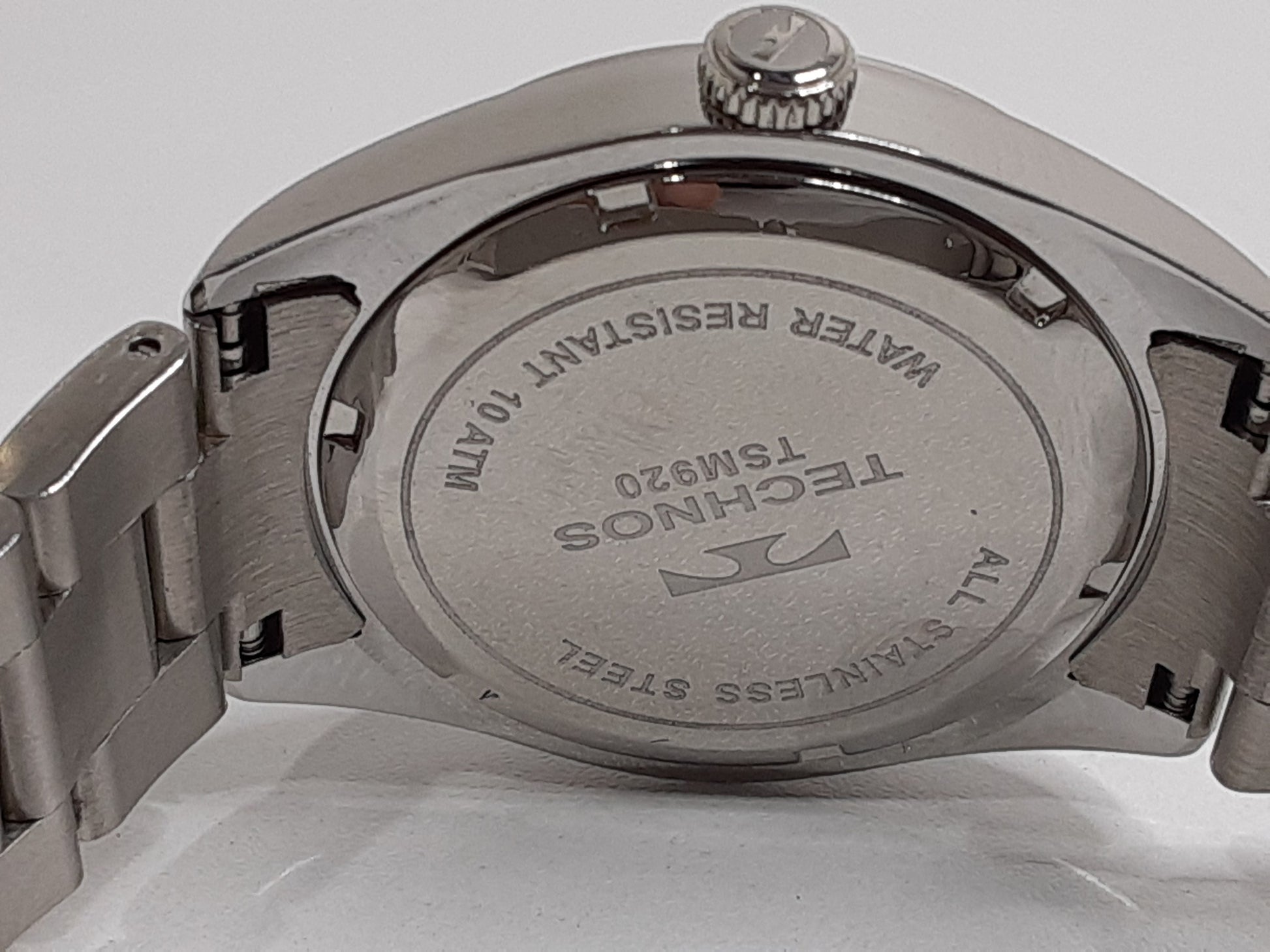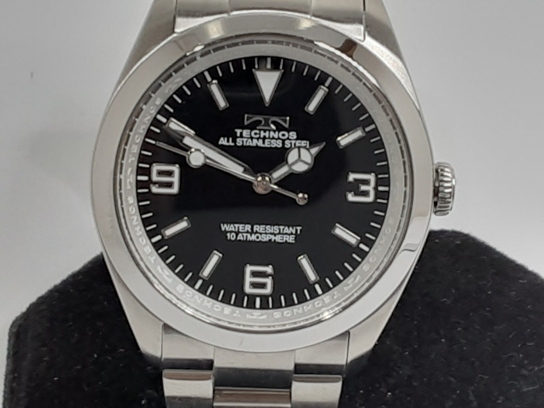 美品 テクノス TECHNOS メンズ 腕時計 TSM920SB 黒 ブラック シルバー SS ブレス アナログ クォーツ QZ ウォッチ 【中古】【送料無料】 ht5399