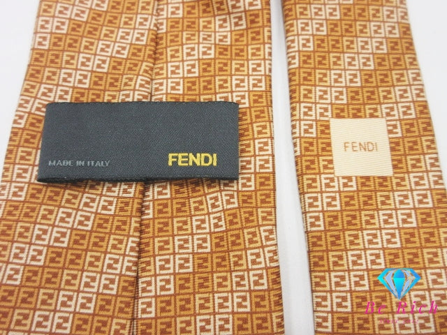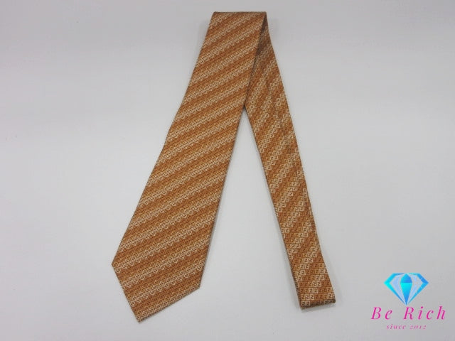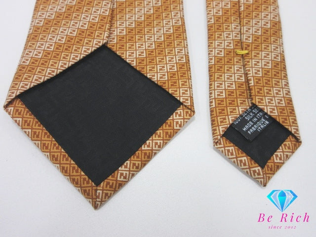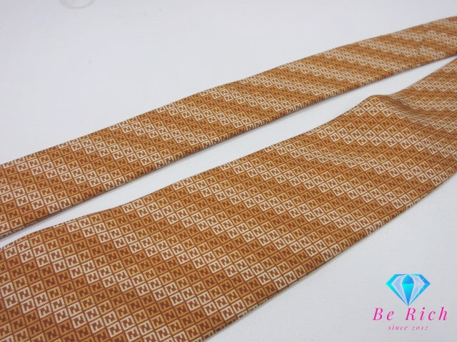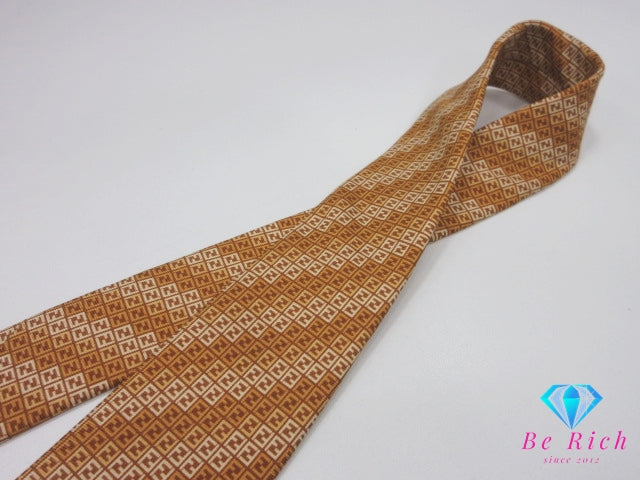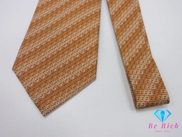 美品 フェンディ FENDI ネクタイ 総柄 ロゴ オレンジ系 ベージュ ズッカ柄 シルク 絹 ビジネス スーツ ファッション 小物 紳士 メンズ 【中古】【送料無料】 bh2890
