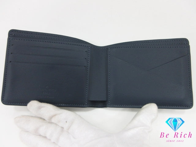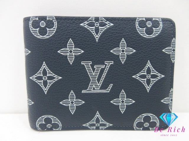 美品 ルイ ヴィトン LOUIS VUITTON モノグラム シャドウ ポルト フォイユ ミュルティプル M83379 ネイビー 紺 レザー LV ロゴ 小銭入れ なし 二つ折り財布 コンパクト ウォレット 【中古】【送料無料】 bs4291