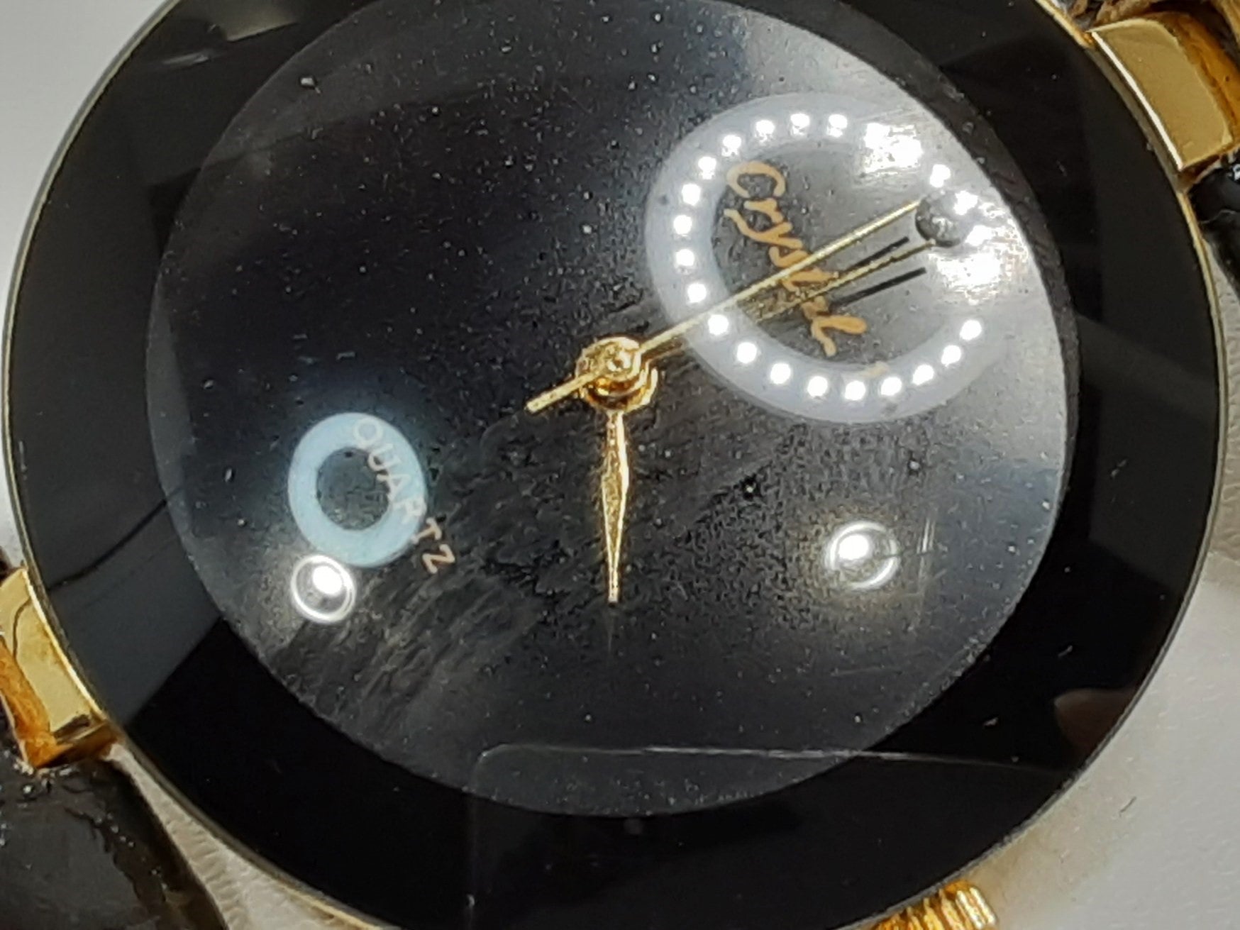 Crystal 1 レディース 腕時計 黒 ブラック SS レザーブレス アナログ クォーツ QZ ファッション ウォッチ クリスタル 【中古】【送料無料】 ht5553