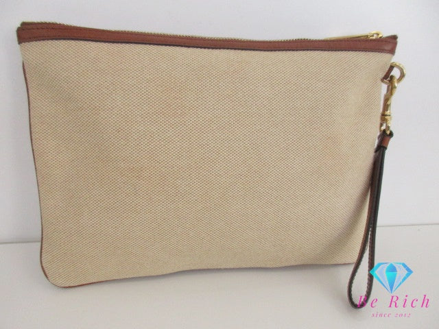 GUCCI グッチ クラッチバッグ ハンドバッグ 576053 シェリー ウェビング インターロッキング G ロゴ ベージュ キャンバス レザー ポーチ ストラップ セカンドバッグ 【中古】【送料無料】 bk9547